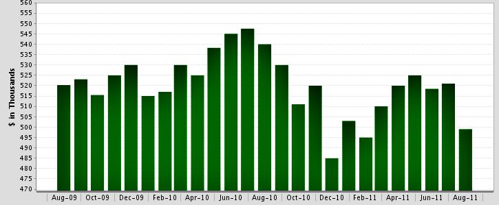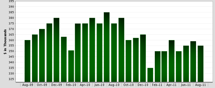 August-09 vs. August-11: The median sold price is down 1% |
